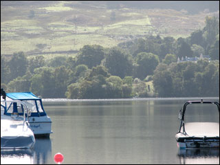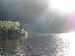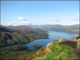 Loch Katrine, the loch below the cave where Patrick washes up afterwards (view from top of Ben A’an).