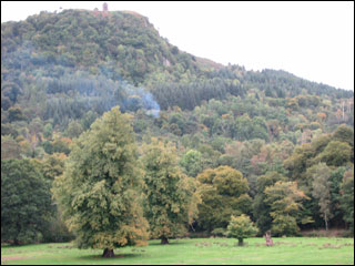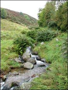 On the left, the Burn of Sorrow which along with the Burn of Care rushes below the castle (Chapter Four). On the right, the hill behind Castle where Elizabeth collects wildflowers. (Chapter Seven).