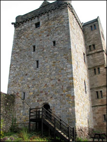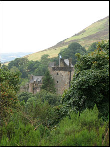 Castle Campbell, Clackmannanshire. Lowland stronghold of Clan Campbell once known as “Castle Gloom” positioned “high in the hills of Ochil.” (Chapter One and Four). On the right is the old keep.