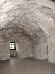 Argyll’s “unusual vaulted stone ceiling” chamber on top floor of tower keep where Patrick recovers, replete with carved Gargoyles. (Chapter Five).