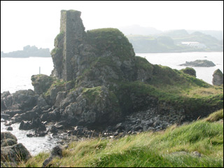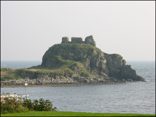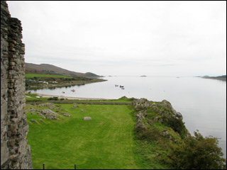 The ruins of Castleswene (or Castle Sween) “the ancient stronghold on the west coast of Knapdale,” and “one of the oldest stone castles in Scotland built to guard the mouth of Loch Sween,” (visible below). (Chapters Nine and Sixteen).