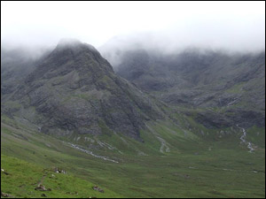 Coire na crèche: The “corrie of the foray” the site “under the looming majesty of the great Cuillin mountain range” where the last clan battle was fought on Skye between the MacLeods and the MacDonalds (Chapter 7).