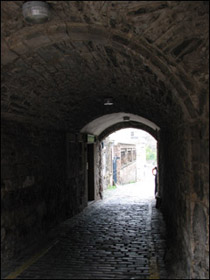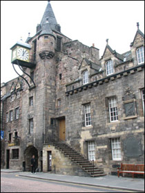 Some of the sites that Alex would have passed on his walk down “Vai Regius,” the way of the King, in Edinburgh (Chapter 5). On the left is the Tolbooth and on the right is the Old Tolbooth Wynd.
