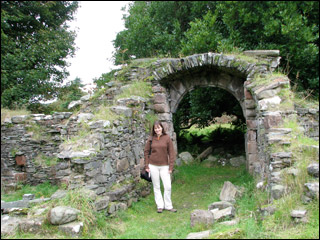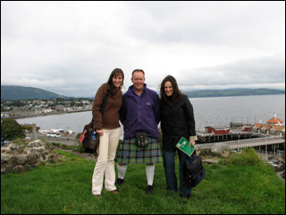 A view of the Firth of Clyde from top of castle hill—me with Iain and Veronica. Dunoon was “located strategically on the western shore of the Clyde on a small promontory, providing an excellent vantage from which to repel attackers.” (Chapter Seven). Argyll was the hereditary keeper of the royal castle. (Chapter Six).