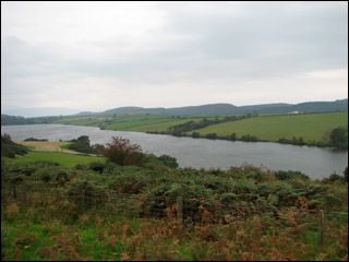 Views of Loch Ascog, Isle of Bute, where I placed Ascog Castle, “the stronghold of Lamont of Ascog, […] a simple rectangular tower house of four stories and a garret surrounded by a sturdy barmkin wall situated on a small rise on the northern edge of the loch.” (Chapter Two). Northern edge is pictured at the top. Note: the actual castle was located across the Kyle in Cowal.