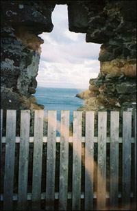 :: Castle Dunscaith, or Dun of the Shadow, was the original seat of the MacDonald of Sleat. Local legend is that Dunscaith was built in one night. At some point in the 16th or early 17th Century the clan seat moved to Duntulm Castle (on the disputed Trotternish peninsula), but as the date of that move was unclear I decided to stick with Dunscaith. A description of Duntulm from a late 16th century reference seems to suggest Duntulm was uninhabited, but by 1616 Sleat refers to Duntulm as his principal residence. Duntulm, too, was abandoned in the early 18th century when a nurse was reported to have dropped the chief's baby son from a window (like the one pictured below) to his death on the rocks below.